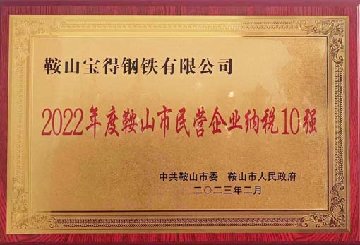 ![]() 2022年度鞍山市民營企業(yè)納稅10強 |