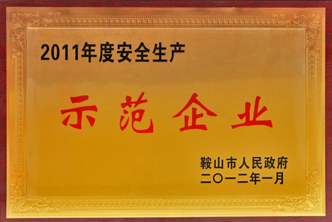 公司被鞍山市政府授予“2011年度安全生產示范企業”