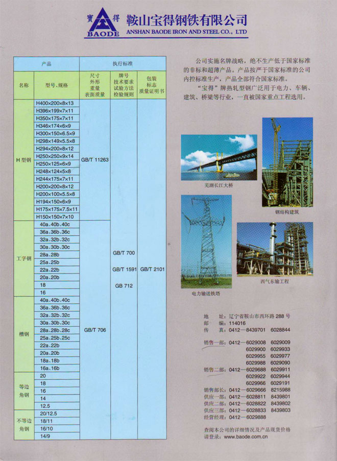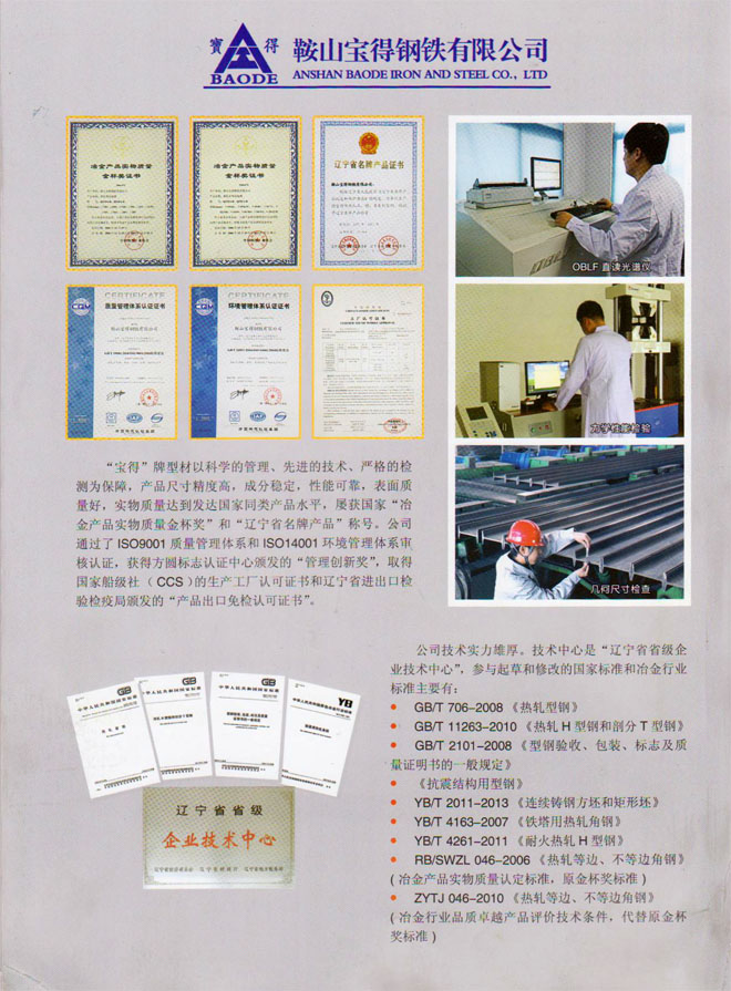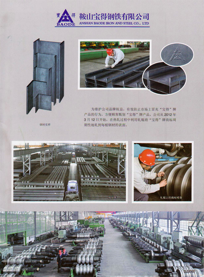 12月19日,公司新版產品樣本制作完成。該樣本全面介紹公司120萬噸型鋼、H型鋼生產線擁有國際先進的工藝、設備情況,以及公司實施名牌戰略生產的高品質型鋼產品。該樣本2開4頁,印刷精良,印刷3萬冊,已開始面向客戶發放。